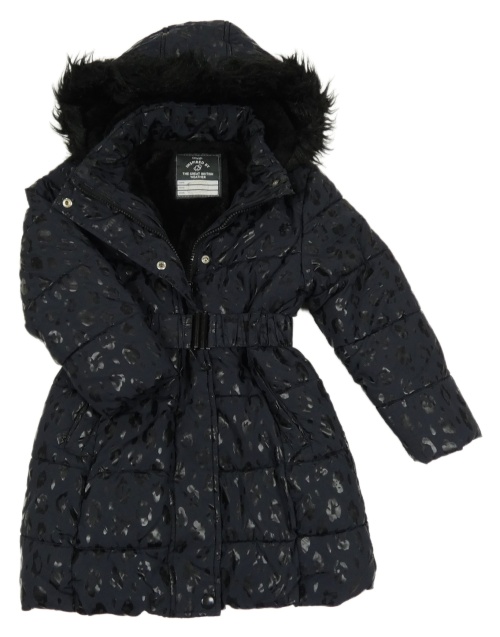 Tmavomodrý leopardí šušťákový zimný kabát s opaskom a kapucňou George