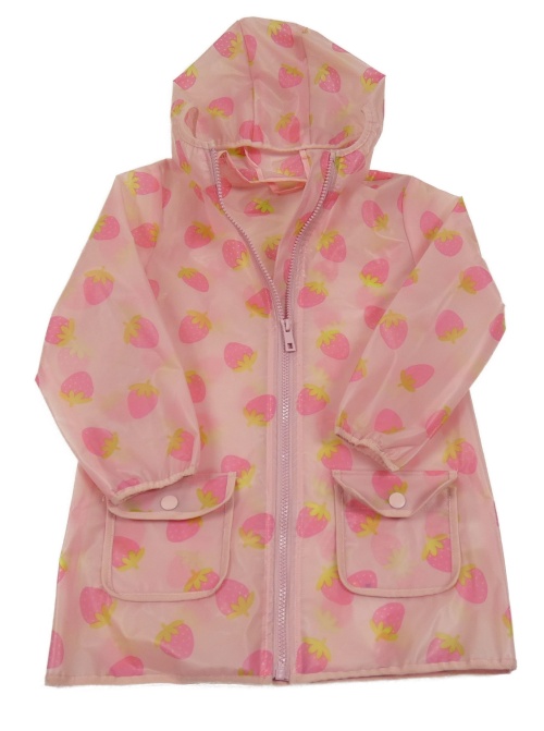 Světlerůžová pláštěnka s jahůdkami a kapucňou