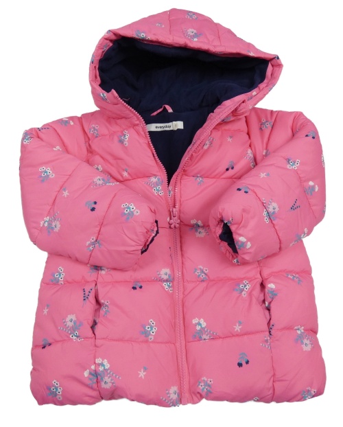 Ružová kvetovaná šušťáková zimná bunda s kapucňou