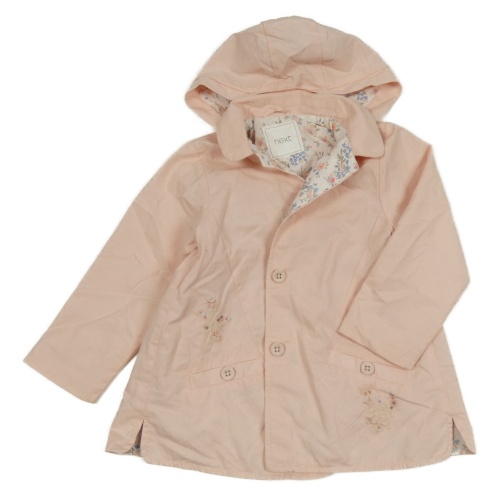 Svetloružový plátenný jarný kabát s kvietkami a kapucňou a golierikom Next