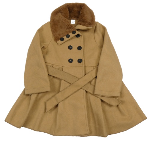Hnedý kabát s kožešinou a opaskom Shein