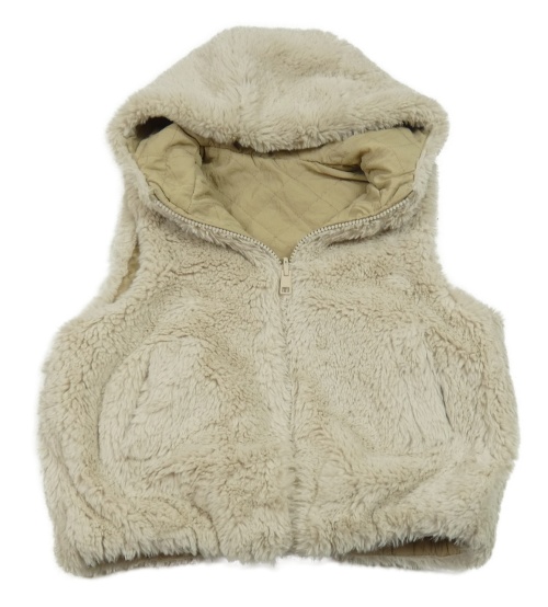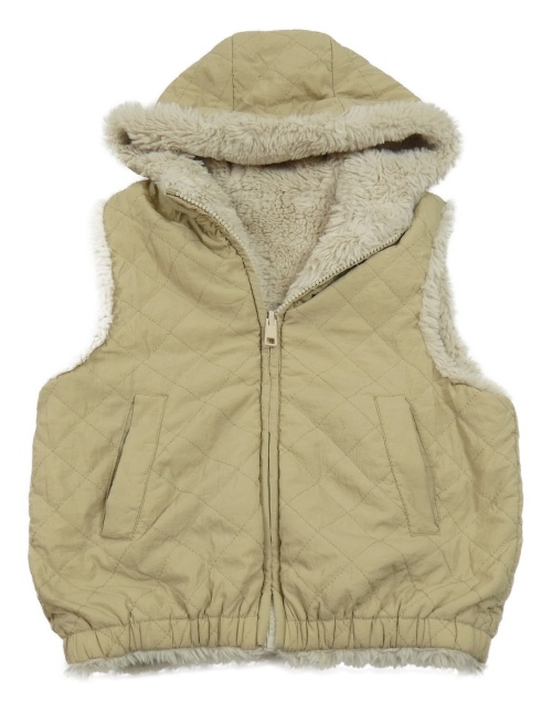 Béžová šušťáková zateplená obojstranná vesta s kapucňou