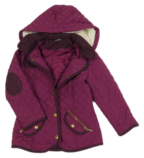 Vínová prešívaná šusťákovo/vlněná zateplená bunda s kapucňou George