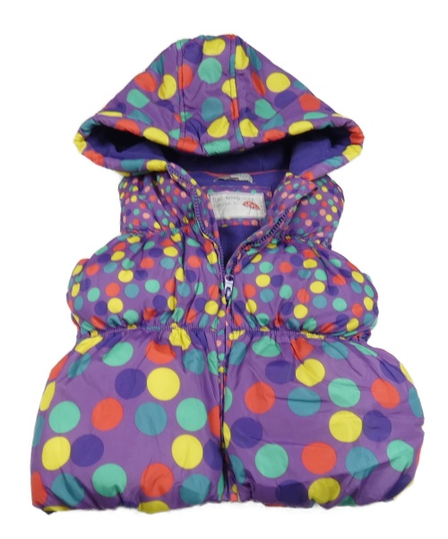 Fialovo-farebná bodkovaná á šušťáková zateplená vesta s kapucňou