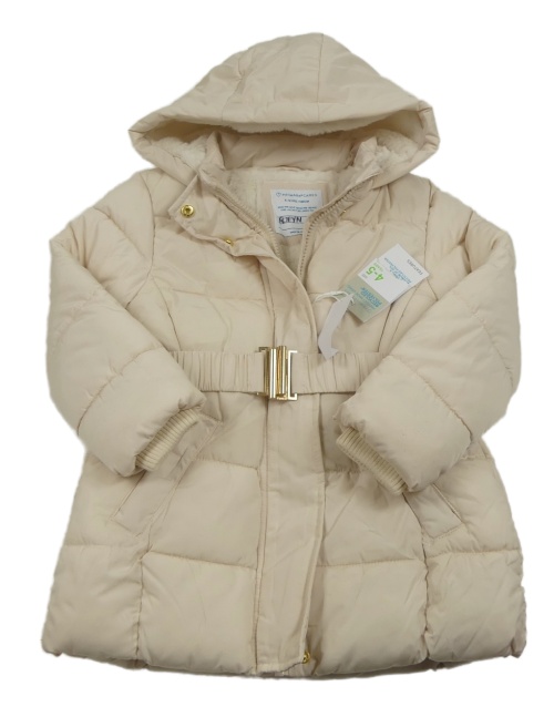 Nové - Smotanová šušťáková zimná bunda s opaskom a kapucňou Primark