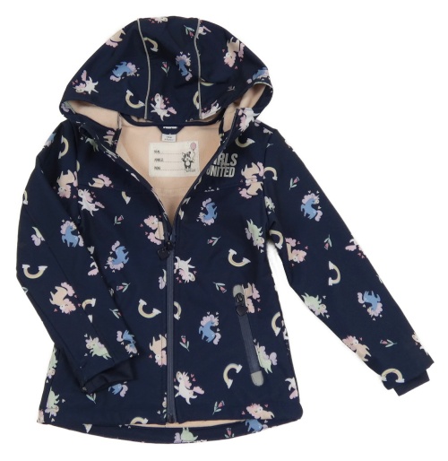 Tmavomodrá softshellová bunda s jednorožcami a kapucňou Dopodopo
