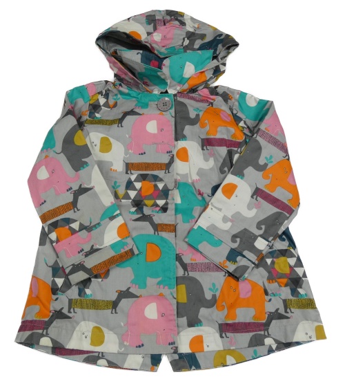 Sivý nepromokavý jarný kabát so slonmi a kapucňou Next