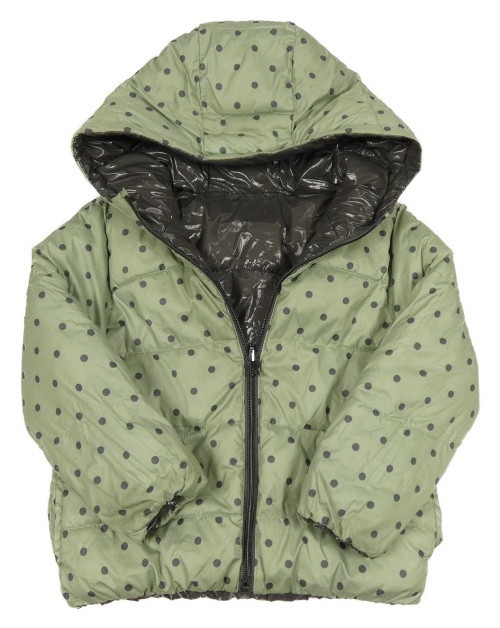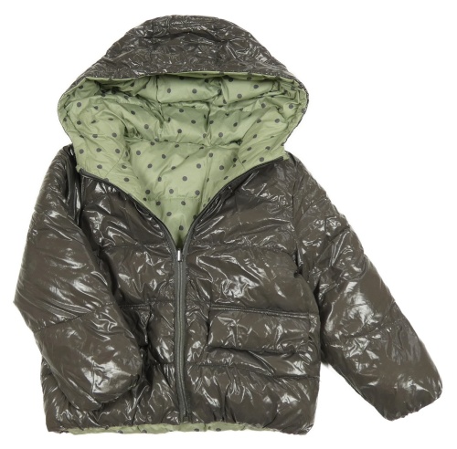 Zelená bodkovaná á šušťáková zimná obojstranná bunda s kapucňou Mayoral