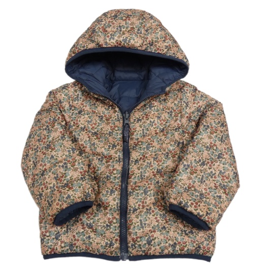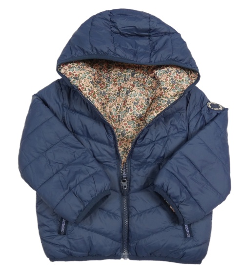 • Svetloružová -kvetovaná šušťáková obojstranná zateplená bunda s kapucňou Vertbaudet