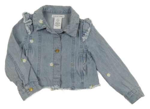 Svetlomodrá crop rifľová bunda s výšivkami