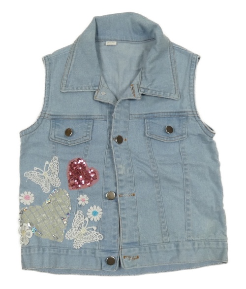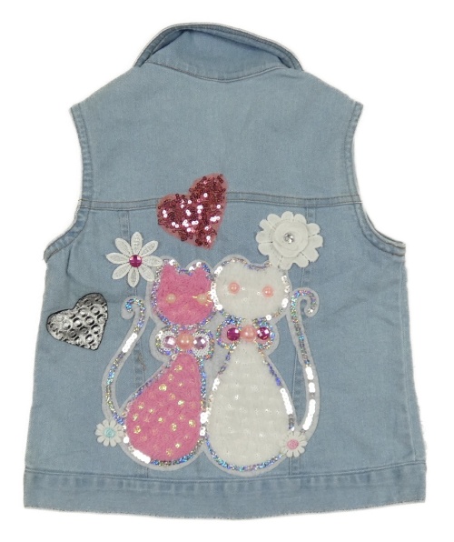 Svetlomodrá rifľová vesta s obrázky z flitrů