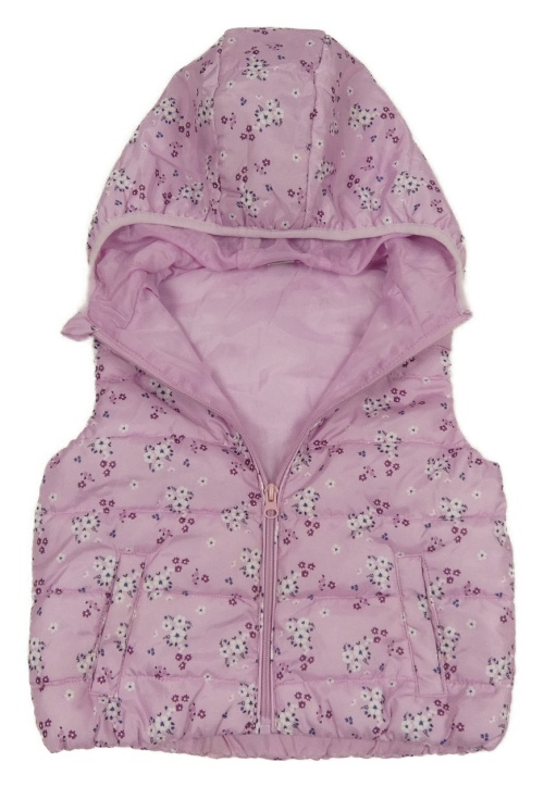 Ružová kvetovaná šušťáková zateplená vesta s kapucňou Little Kids