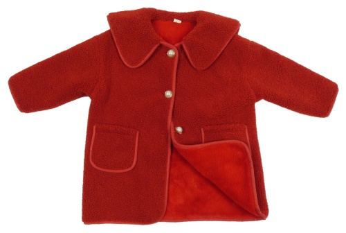 Červený huňatý zateplený kabát