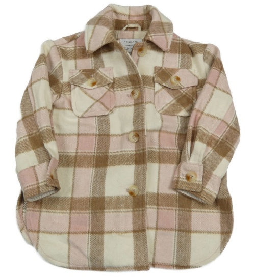 Smetanovo-hnedo-ružová kockovaná vlnená košeľová bunda Primark