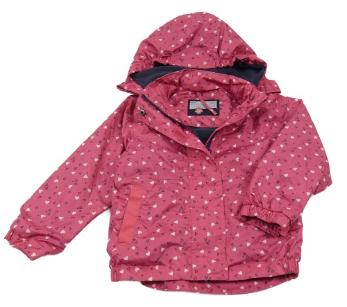 Ružová šušťáková jarná bunda so srdiečkami a kapucňou