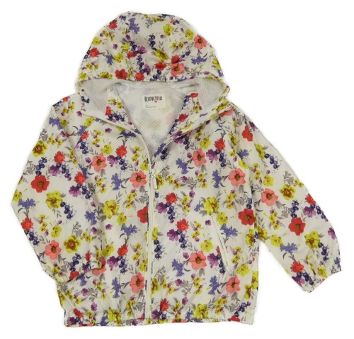Smotanová šušťáková jarná bunda s kvietkami a kapucňou Prénatal