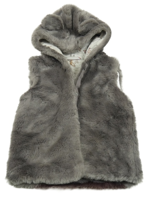 Sivá kožušinová podšitá vesta s kapucňou Next