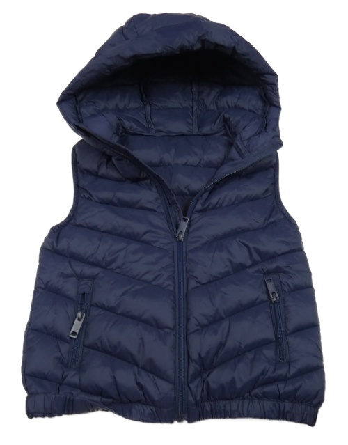 Tmavomodrá prešívaná šušťáková zateplená vesta s kapucňou St. Bernard