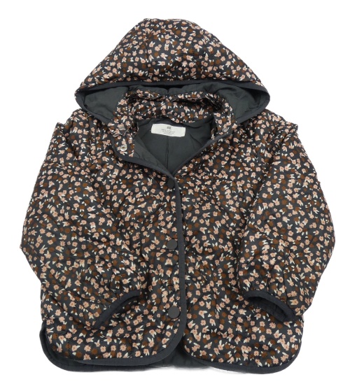 Čierna kvetovaná prešívaná šušťáková zateplená bunda s kapucňou H&M