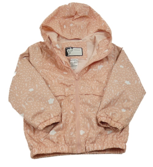 Svetloružová vzorovaná šušťáková funkčná jarná bunda s kapucňou Quechua
