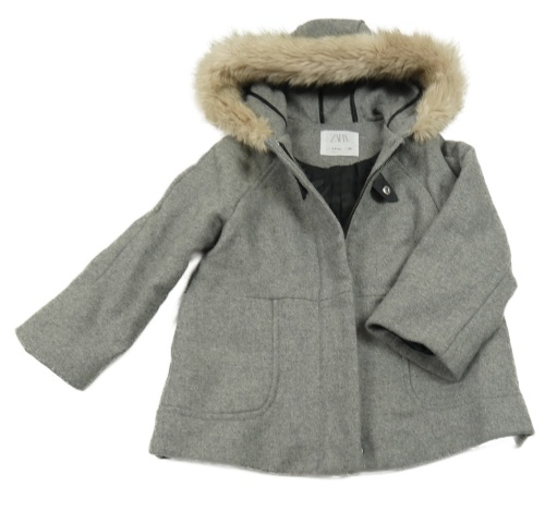 Sivý vlnený lehce zateplený kabát s kapucňou Zara