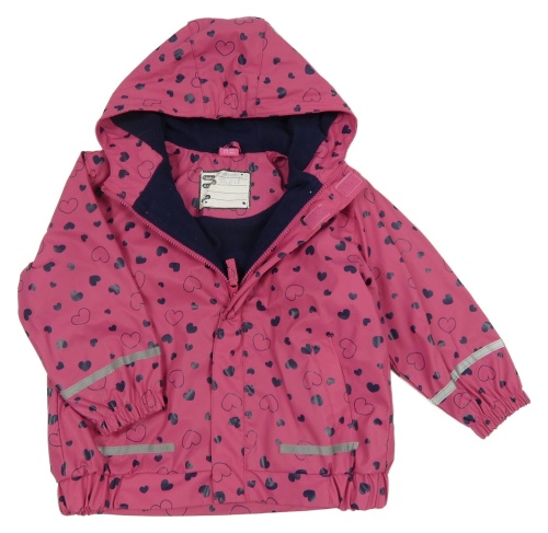 Tmavoružová nepromokavá jarná bunda so srdiečkami a kapucňou X-MAIL
