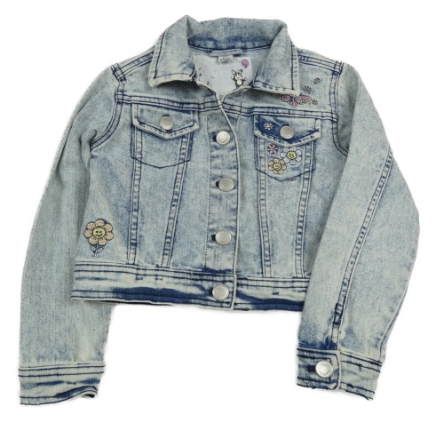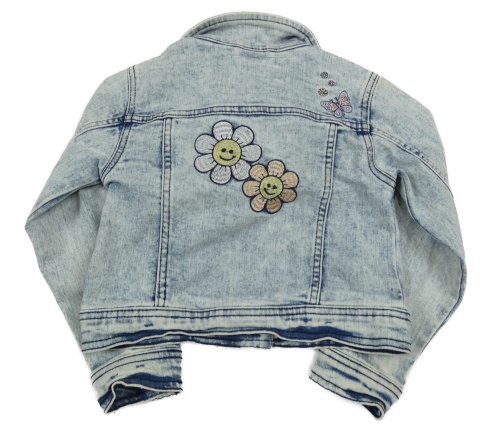 Modrá melírovaná rifľová crop bunda s motýlikmi a kvietkami Dopodopo
