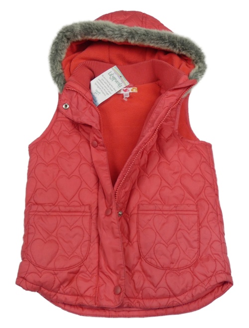 Jahodová šušťáková zateplená vesta s prešívanými srdiečkami a kapucňou s kožešinou M&S