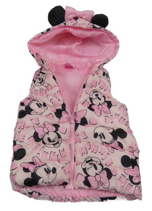 Ružovo-čierna šušťáková zateplená vesta s Minnie a kapucňou