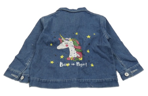 Nové - Tmavomodrá rifľová bunda s vyšúchaním a jednorožcom
