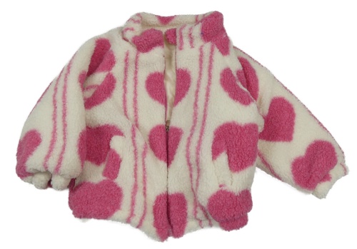 Bílo - ružová huňatá podšitá bunda so srdiečkami