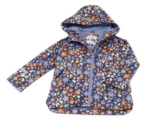 Tmavomodrá nepromokavá jarná bunda s kvietkami a kapucňou Primark