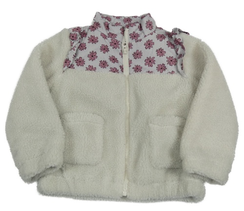 Smotanová huňatá zateplená bunda s kvetmi a volánikmi St. Bernard