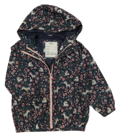 Tmavomodro-kvetovaná šušťáková jarná bunda s jednorožcami a kapucňou M&S