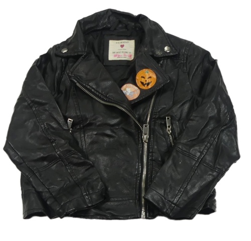 Čierny koženkový jesenný krivák s nálepkami Primark
