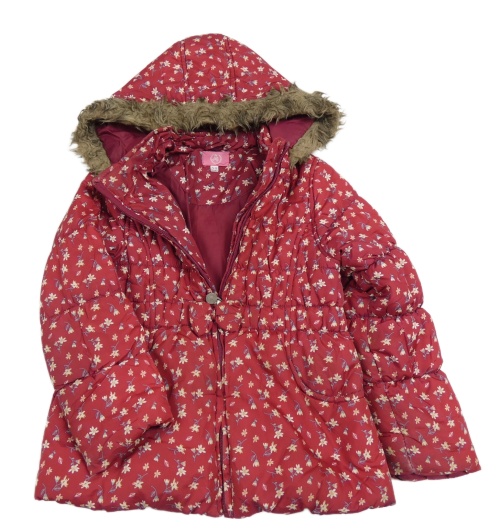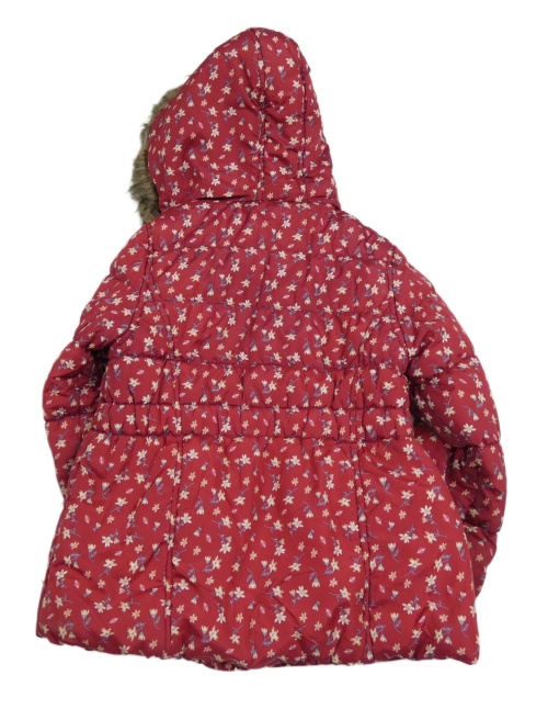 Vínová kvetovaná šušťáková zimná bunda s kapucňou s kožešinou