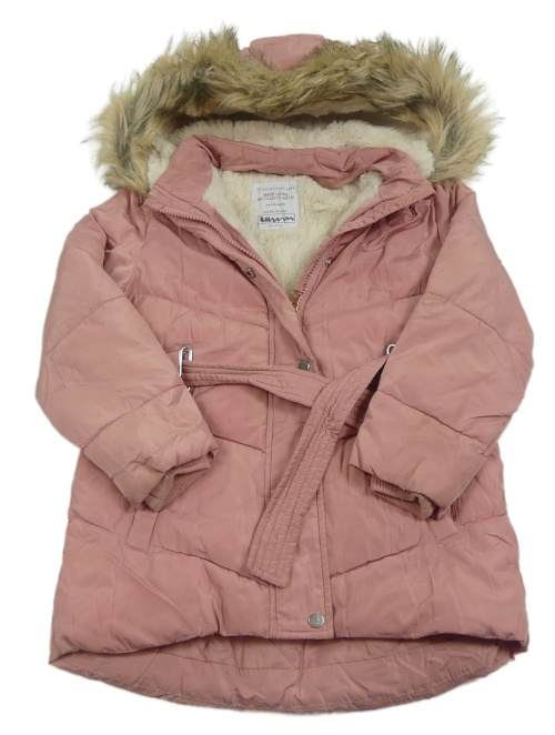 Ružová šušťáková zimná bunda s opaskom a kapucňou s kožešinou Primark
