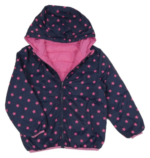 • Tmavomodrá šušťáková zateplená oboustanná bunda s hviezdami a kapucňou George