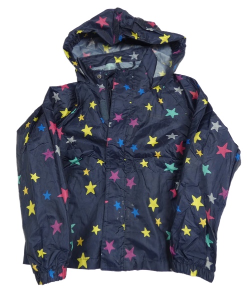 • Tmavomodrá šušťáková nepromokavá bunda s farebnými hviezdami a kapucňou Mountain Warehouse