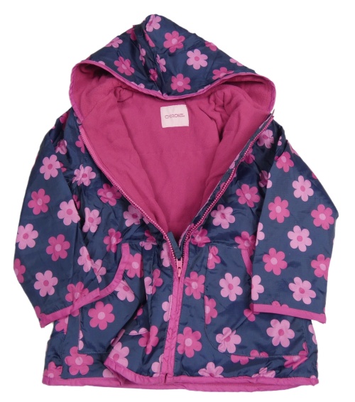 Tmavomodro-ružová kvetovaná šušťáková jesenná bunda s kapucňou Cherokee