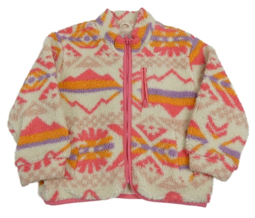 Smetanovo-ružovo-oranžová vzorovaná huňatá podšitá bunda Matalan