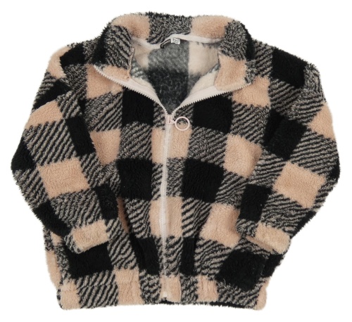 Ružovo-čierna kockovaná huňatá bunda Pep&Co
