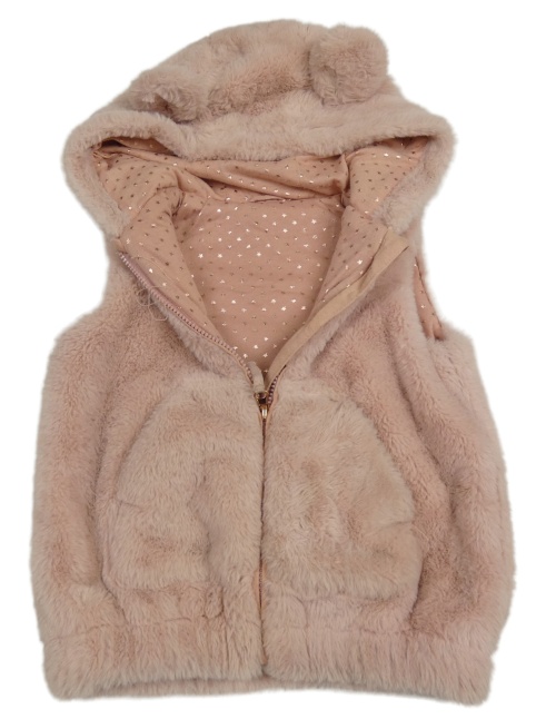 Svetloružová kožušinová zateplená vesta s kapucňou Nutmeg