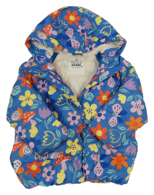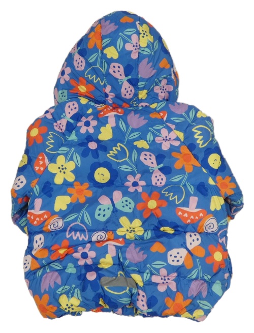 • Modrá prešívaná šušťáková zimná bunda s kvietkami a motýlikmi a kapucňou F&F