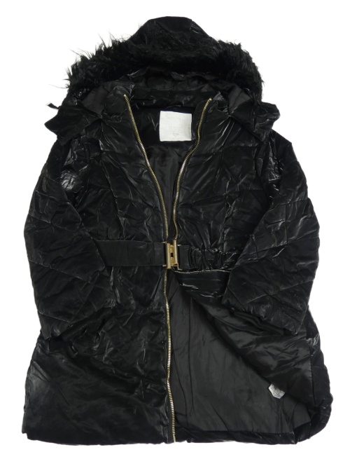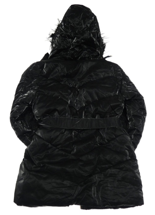 Čierna lesklá šušťáková zimná bunda s opaskom a kapucňou Kiabi