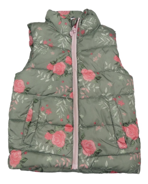 Khaki šušťáková prešívaná zateplená vesta s kvetmi Dopodopo