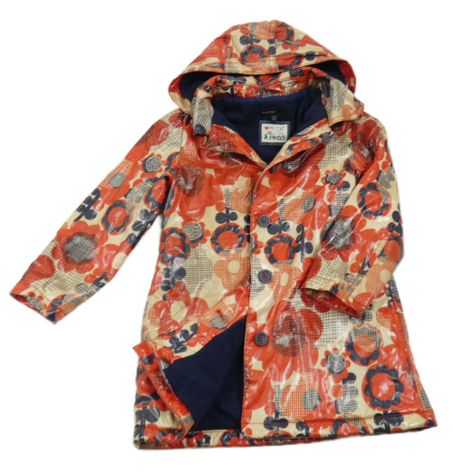 Smetanovo-červeno-tmavomodrý kvetovaný nepromokavý kabát s kapucňou M&S