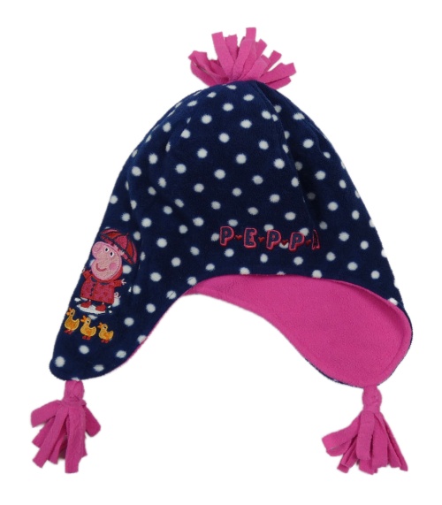 Tmavomodrá bodkovaná á fleecová čapica s Peppa pig