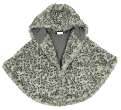 Sivé kožušinové podšité pončo s leopardím vzorom a kapucňou Next