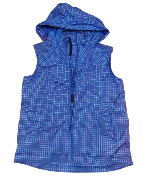 Modro-ružová kockovaná šušťáková zateplená vesta s kapucňou Wolf